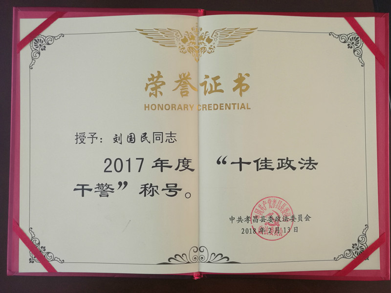 热烈祝贺孝昌县人民法院办公室、行政庭被授予2017年度“十佳政法单位”称号;骆荣华、刘国民同志被授予2017年度“十佳政法干警”称号。