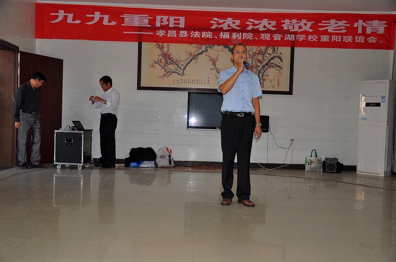 “九九重阳节、浓浓敬老情”, 10月12日,在九九重阳节即将来临之际,孝昌法院党总支、青年法官诊疗团、孝昌老年人艺术团、观音湖学校与孝昌福利院联合举办文艺演出活动。表演了唱歌、跳舞、戏曲等丰富多彩的节目,给院内百位老人送去欢乐大餐。