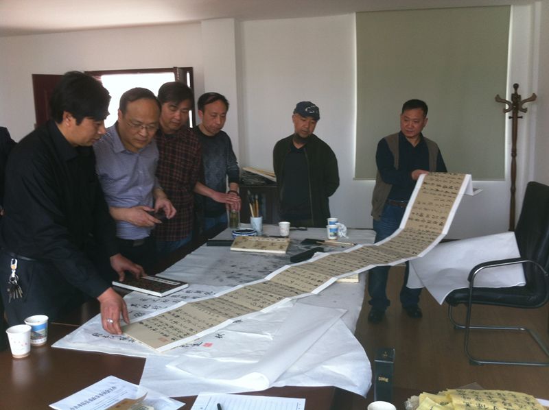 2014年3月28日,安陆书协主席聂武、书法家刘子安一行来孝昌法院交流指导书法艺术。
