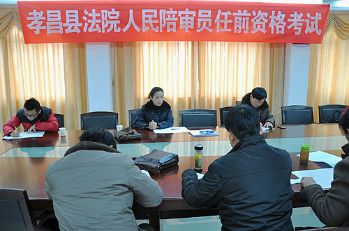 元月7日,在县人大常委会的组织下,孝昌法院对拟任21位人民陪审员进行任前法律知识考试。力求通过考试,进一步促进提请任命人员带头学法知法懂法,增强法制观念,提高执法水平,更好的为社会主义司法制度作贡献。