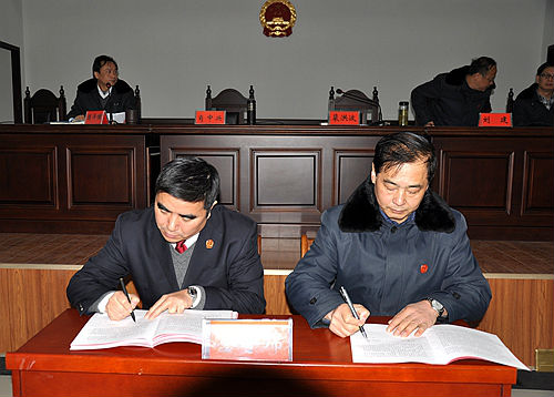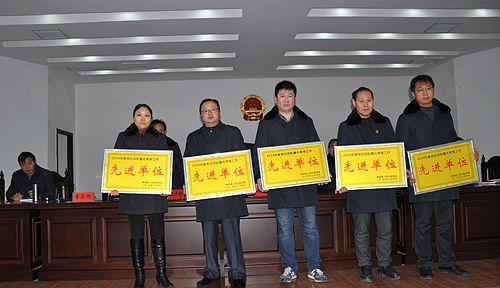 会上,肖中兴院长高兴的提出,2014年,孝昌法院审判绩效综合考评进入全市第一方阵,涉诉信访总量大幅度下降,涉诉信访工作得到上级法院、市委、县委领导肯定,信息宣传工作处于全市领先地位,基础设施建设实现重大突破,多项工作、多名干警受到市级以上表彰奖励,孝昌法院在全省、全市的影响正逐步扩大。所有成绩的取得,在于院党组的精诚团结,在于全院干警的协力共进。随后,肖中兴分别与分管院领导签订了党风廉政建设责任书,与各庭科室负责人签订了党风廉政建设责任书、2015年岗位目标管理责任书、涉诉信访工作目标责任书,表彰了先进集体和先进个人。