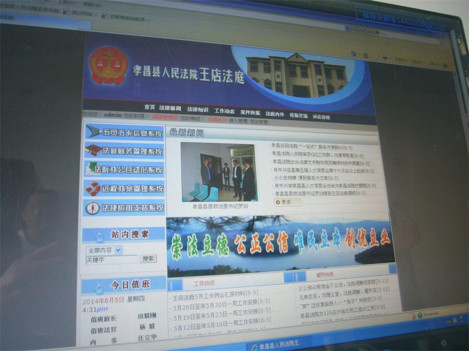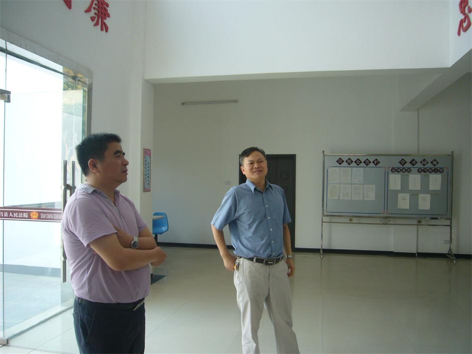 6月5日下午,市中院党组成员、政治处主任郭先文、市政治处副主任陈红元一行到孝昌王店考察示范法庭建设,孝昌法院党组书记、代院长肖中兴、党组成员、副院长李爱国陪同检查,并就孝昌法院人民陪审员、思想政治工作、党的群众路线教育实践活动、法院文化建设,教育培训等方面的开展情况向郭主任作了汇报。