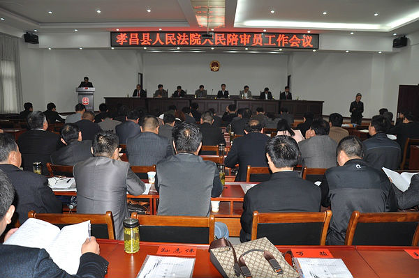 2014年4月25日,孝昌县人民法院召开人民陪审员工作会议,会议对49名新增选的人民陪审员颁发了任命书并进行了岗前业务培训。会议由县法院副院长裴洪波主持,县委常委、政法委书记罗剑锋、县人大常委会副主任卢端出席会议并作重要讲话,县政协副主席李毅敏、县人大常委会法工委主任沈保东、县司法局局长付柏桥参加了会议。