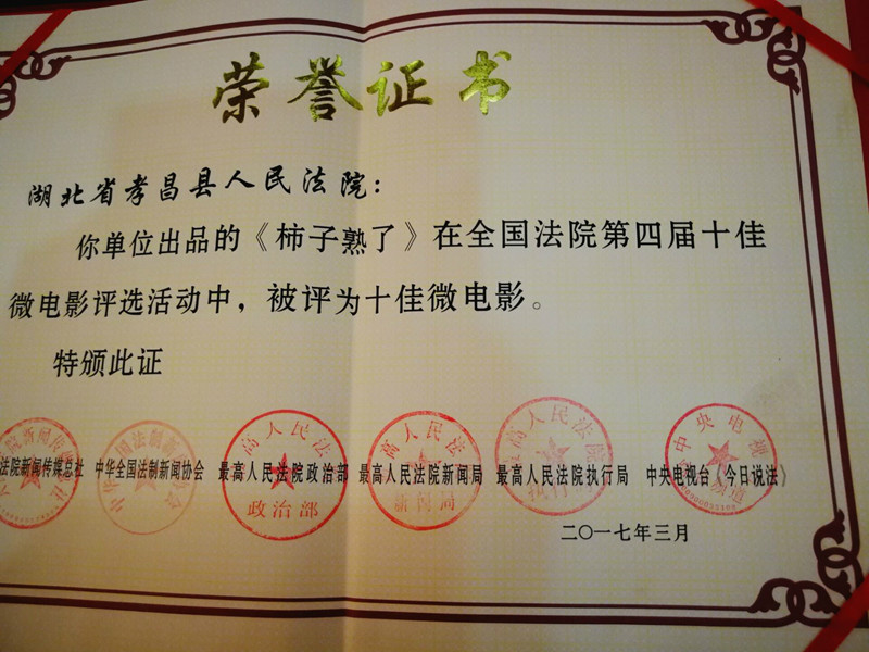 孝昌法院《柿子熟了》被评为全国法院第四届十佳微电影