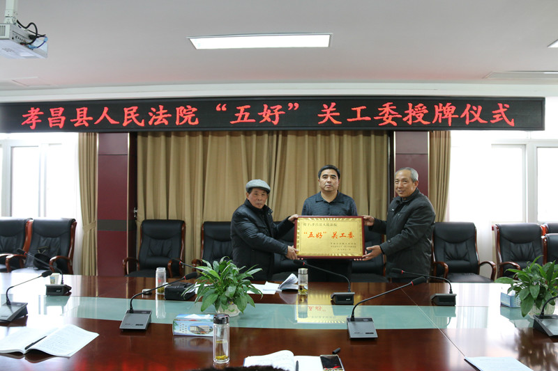 12月18日,孝昌法院被授予“五好”关工委的荣誉称号。该院的关工委工作受到当地关工委和上级法院的充分肯定,县关工委副主任张亮吾、孝感市中级人民法院关工委副主任胡进安现场为该院颁发了荣誉奖牌。