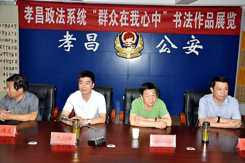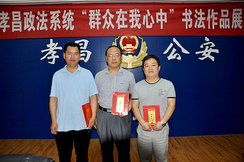 6月13日下午,由孝昌县政法委组织的“群众在我心中”孝昌政法系统书法作品展览在孝昌县公安局三楼会议室举行。县委常委、政法委书记罗剑锋,副县长涂国仿,市书协主席徐怀德,县书协主席团全体成员为获奖者颁奖。此次活动共收集作品100余件,评出获奖作品13件,入展作品53件。孝昌法院刘建、胡云华荣获二等奖;许杰荣获三等奖;法院六位干警入展。