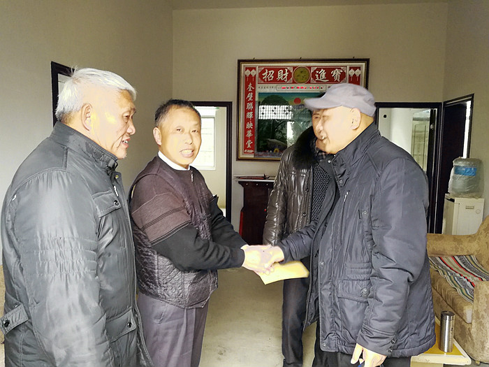 2017年1月12日,孝昌法院“四合一”工作队一行来到对口村周巷镇黄庙村,在该村党总支书记汤子云等陪同下,走访慰问了5户贫困家庭,对他们嘘寒问暖,为他们送去春节前的慰问与祝福。