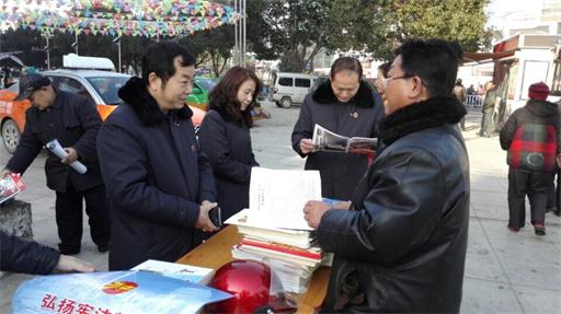 12月4日,为深入贯彻党的十八大四中全会精神,深入推进依法治国、依法治县的步伐,孝昌法院联合工商局、司法局、质监局等部门在金润超市门口开展“弘扬法治精神、建设法治中国”的法治宣传活动。法院在本次活动中发放普法漫画书籍、诉讼指南等各类法律知识宣传资料500余份,接受群众咨询100余人次,为在全县营造尊崇宪法,信仰法治的良好舆论氛围打下了基础。