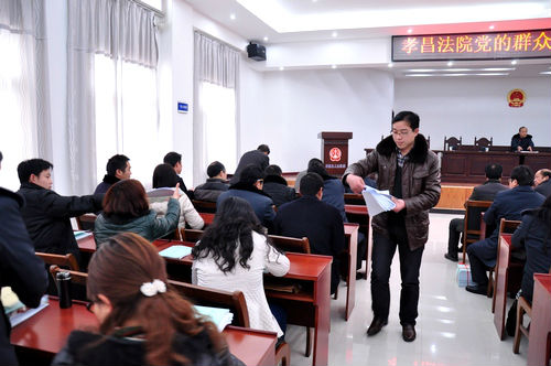 3月3日下午三点,孝昌法院在五楼大会议室召开党的群众路线教育实践活动动员大会。会议共三个议题:一是由党组成员、副院长裴洪波作动员讲话;二是由县委组织部付部长作重要讲话;三是进行民主测评。