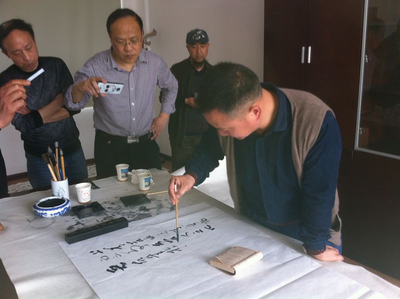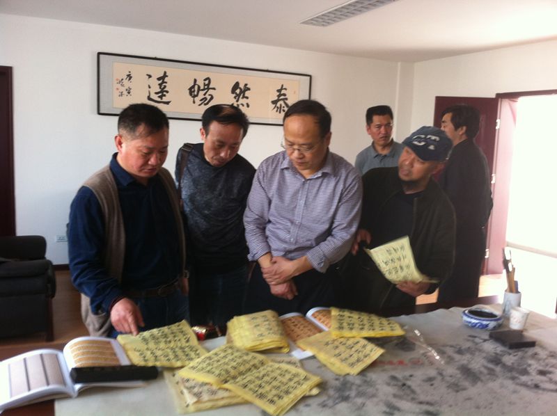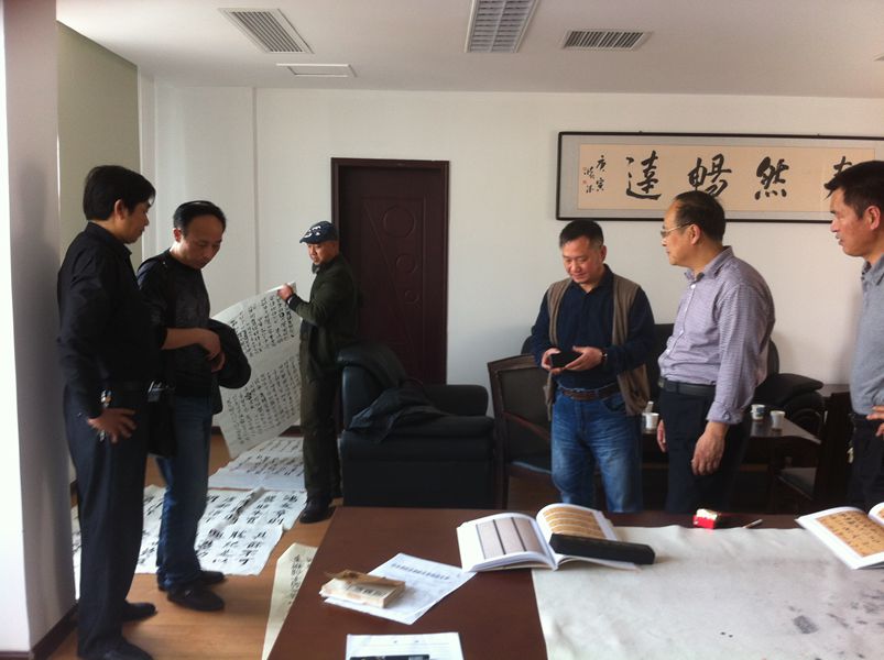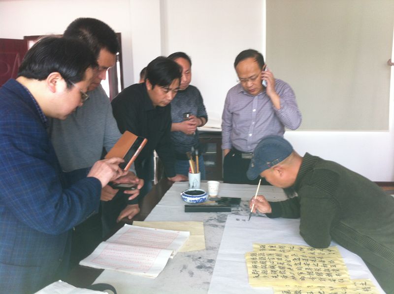 2014年3月28日,安陆书协主席聂武、书法家刘子安一行来孝昌法院交流指导书法艺术。