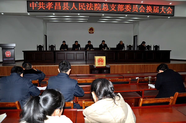根据孝昌县直机关工委关于做好县直机关党组织集中换届工作的通知要求,2013年12月13日,孝昌法院召开全体党员大会,选举中共孝昌县人民法院新一届总支部委员会,应到会党员人数84人,实到63人,符合法定人数。会议通过投票,产生了新一届总支部委员会:总支书记刘涛明,副书记裴洪波,委员刘建、李爱国、闵新华、陈泽雄、陈晓安、武振林、黄芳。院长刘涛明随后就当选总支书记作了表态性发言。