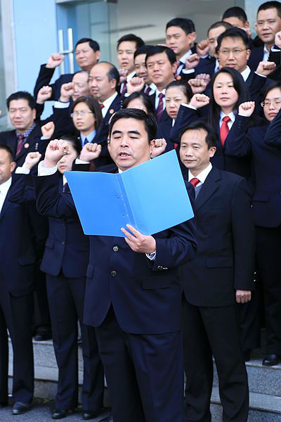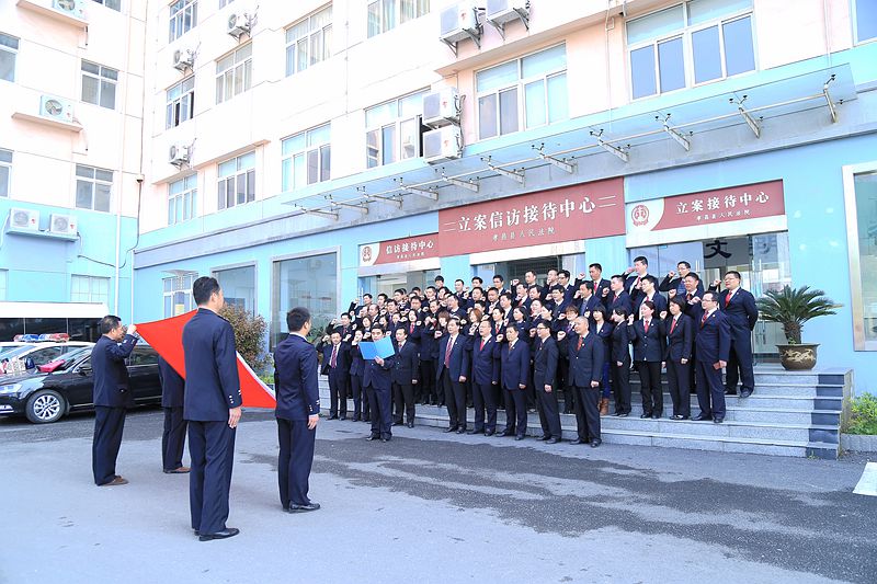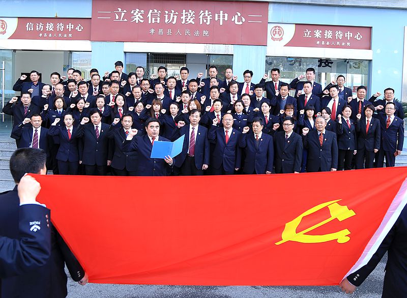 鲜红的党旗、胸前的法徽共同见证了孝昌法院认真贯彻落实三项重点集中教育活动的决心